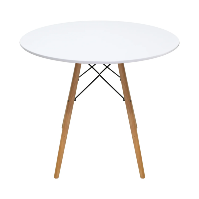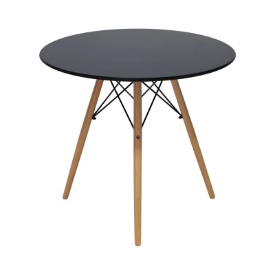 MESA EAMES DIAMETRO DE 80 CM. CUBIERTA COLOR BLANCO O NEGRO. PATAS DE MADERA.